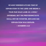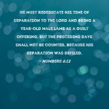 He must rededicate his time of separation to the LORD and bring a year-old male lamb as a guilt offering. But the preceding days shall not be counted, because his separation was defiled.