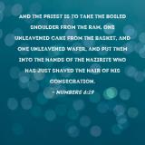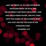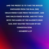 And the priest is to take the boiled shoulder from the ram, one unleavened cake from the basket, and one unleavened wafer, and put them into the hands of the Nazirite who has just shaved the hair of his consecration.