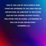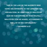 This is the law of the Nazirite who vows his offering to the LORD for his separation, in addition to whatever else he can afford; he must fulfill whatever vow he makes, according to the law of his separation."
