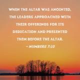 When the altar was anointed, the leaders approached with their offerings for its dedication and presented them before the altar.