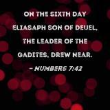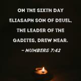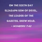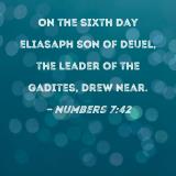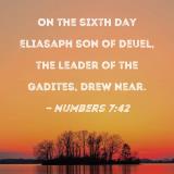 On the sixth day Eliasaph son of Deuel, the leader of the Gadites, drew near.