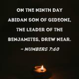 On the ninth day Abidan son of Gideoni, the leader of the Benjamites, drew near.