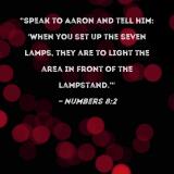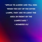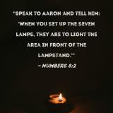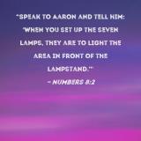 "Speak to Aaron and tell him: 'When you set up the seven lamps, they are to light the area in front of the lampstand.'"