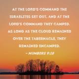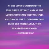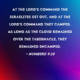 At the LORD's command the Israelites set out, and at the LORD's command they camped. As long as the cloud remained over the tabernacle, they remained encamped.
