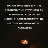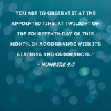 You are to observe it at the appointed time, at twilight on the fourteenth day of this month, in accordance with its statutes and ordinances."