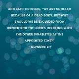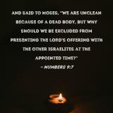 and said to Moses, "We are unclean because of a dead body, but why should we be excluded from presenting the LORD's offering with the other Israelites at the appointed time?"