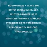 no longer as a slave, but better than a slave, as a beloved brother. He is especially beloved to me, but even more so to you, both in person and in the Lord.