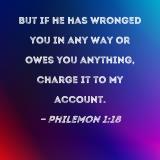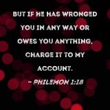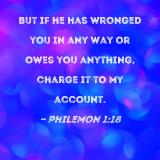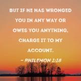 But if he has wronged you in any way or owes you anything, charge it to my account.