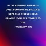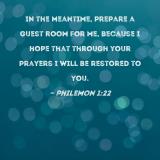In the meantime, prepare a guest room for me, because I hope that through your prayers I will be restored to you.