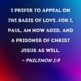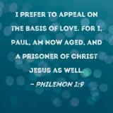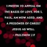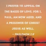 I prefer to appeal on the basis of love. For I, Paul, am now aged, and a prisoner of Christ Jesus as well.