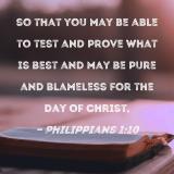 so that you may be able to test and prove what is best and may be pure and blameless for the day of Christ,