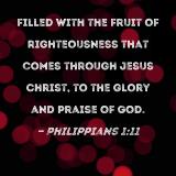 filled with the fruit of righteousness that comes through Jesus Christ, to the glory and praise of God.