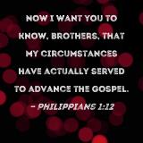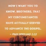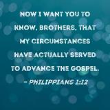 Now I want you to know, brothers, that my circumstances have actually served to advance the gospel.