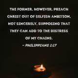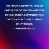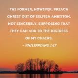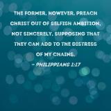 The former, however, preach Christ out of selfish ambition, not sincerely, supposing that they can add to the distress of my chains.