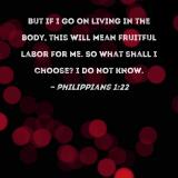 But if I go on living in the body, this will mean fruitful labor for me. So what shall I choose? I do not know.