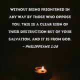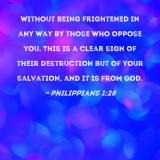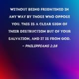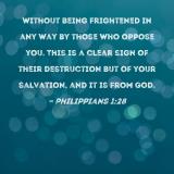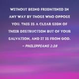 without being frightened in any way by those who oppose you. This is a clear sign of their destruction but of your salvation, and it is from God.