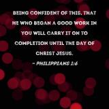 being confident of this, that He who began a good work in you will carry it on to completion until the day of Christ Jesus.