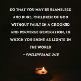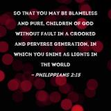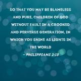 so that you may be blameless and pure, children of God without fault in a crooked and perverse generation, in which you shine as lights in the world