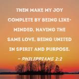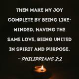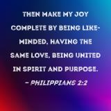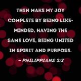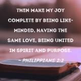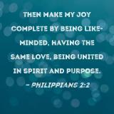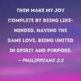 then make my joy complete by being like-minded, having the same love, being united in spirit and purpose.