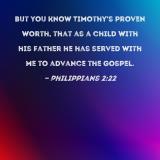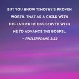 But you know Timothy's proven worth, that as a child with his father he has served with me to advance the gospel.