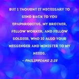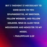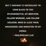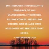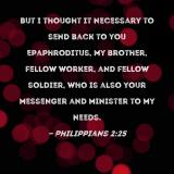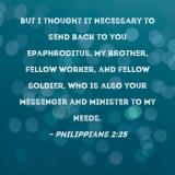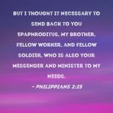 But I thought it necessary to send back to you Epaphroditus, my brother, fellow worker, and fellow soldier, who is also your messenger and minister to my needs.
