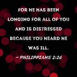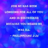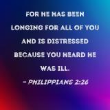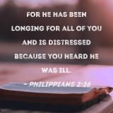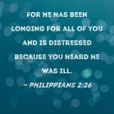 For he has been longing for all of you and is distressed because you heard he was ill.