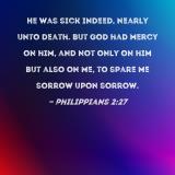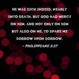 He was sick indeed, nearly unto death. But God had mercy on him, and not only on him but also on me, to spare me sorrow upon sorrow.