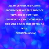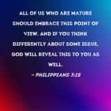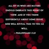 All of us who are mature should embrace this point of view. And if you think differently about some issue, God will reveal this to you as well.
