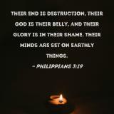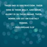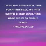Their end is destruction, their god is their belly, and their glory is in their shame. Their minds are set on earthly things.