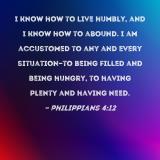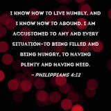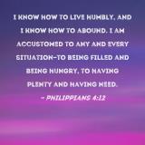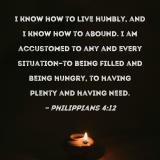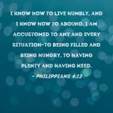 I know how to live humbly, and I know how to abound. I am accustomed to any and every situation--to being filled and being hungry, to having plenty and having need.