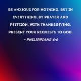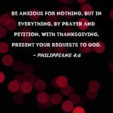 Be anxious for nothing, but in everything, by prayer and petition, with thanksgiving, present your requests to God.
