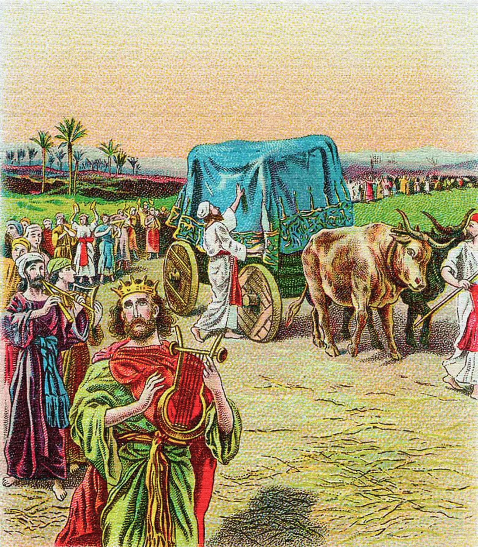 Ark brought to Jerusalem - steer - wagon - music instruments