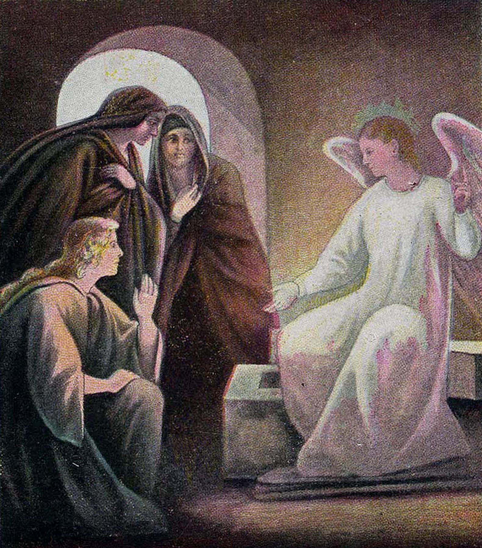 - Angel tells Jesus has risen from dead