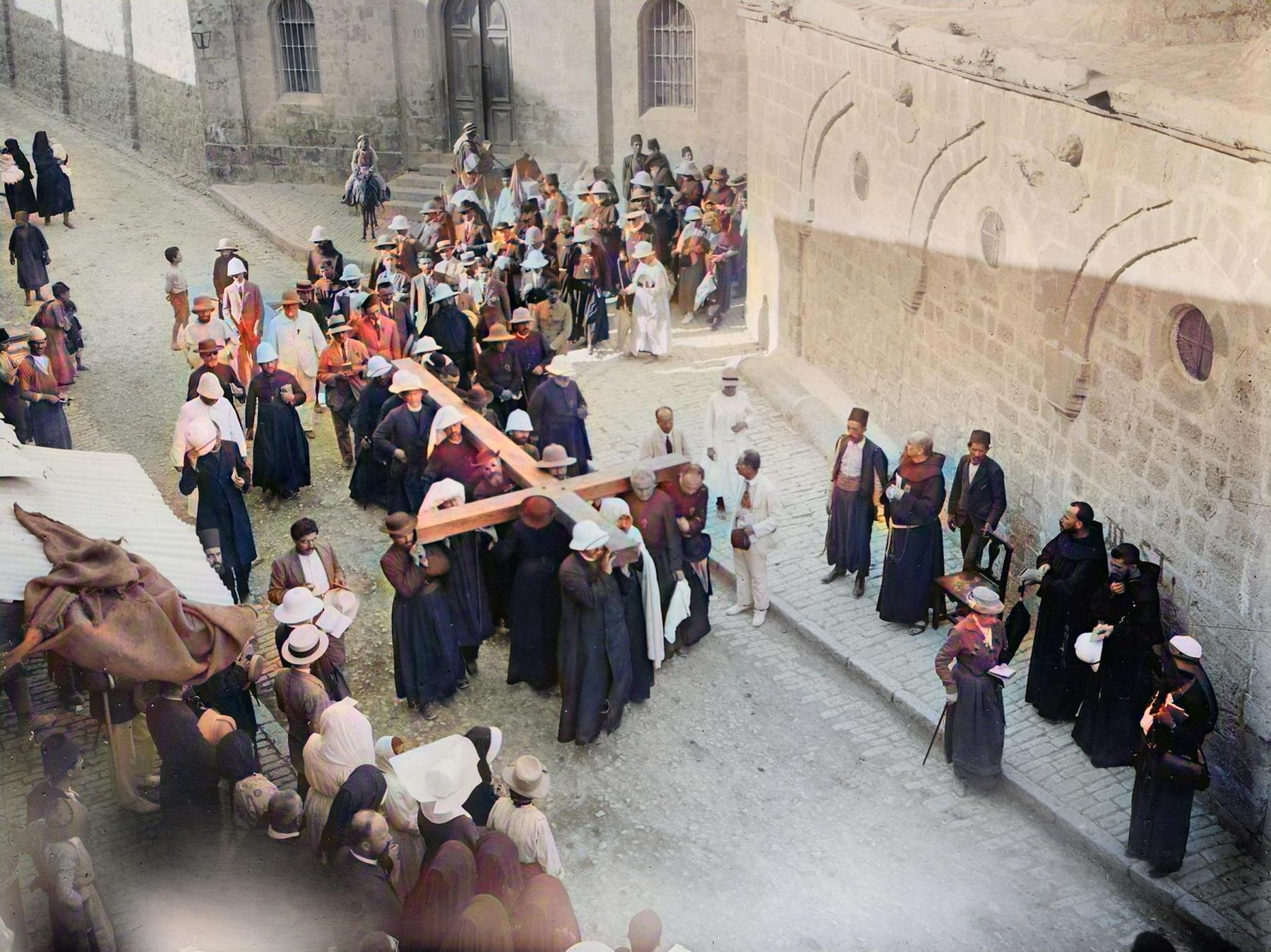 Via Dolorosa, pilgrims carrying cross, Jerusalem
