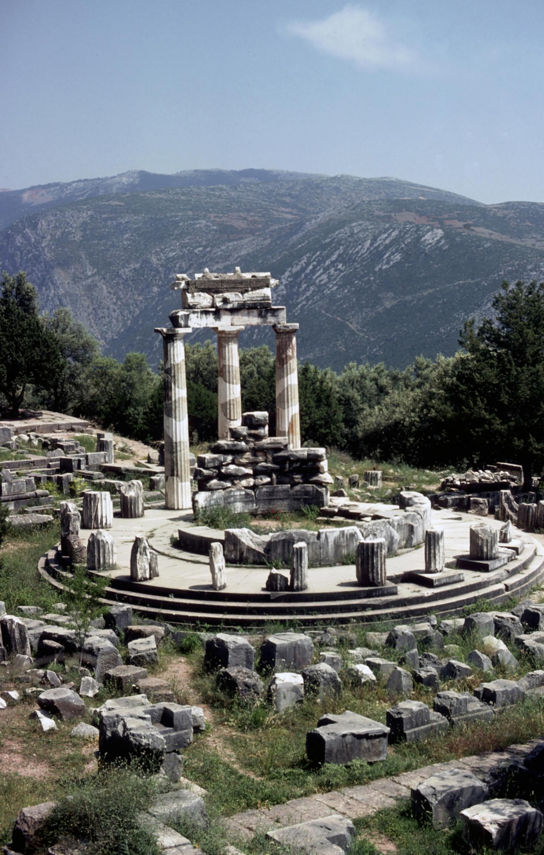 delphi; ancient; greece; trophonius; agamedesapollo; sacred; plateau; mt; mount; parnassus; gulf; corinth; column; colums; ruin; ancients; plateaus; mounts; gulfs; columns; ruins
