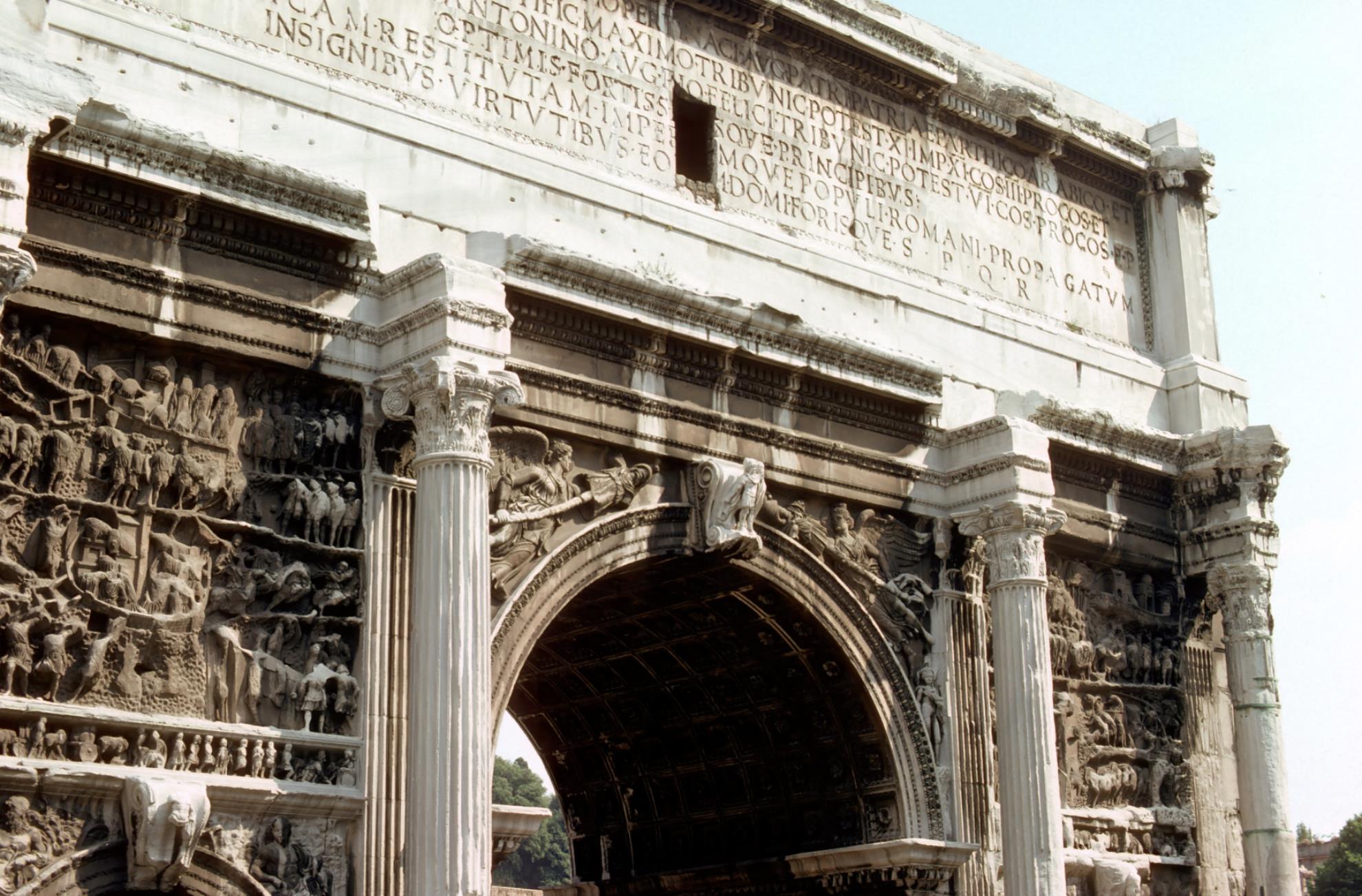 The Arch of Constantine ![]() The Arch of Constantine, Rome. A triumphal arch, erected about 315 AD to commemorate the triumph of Constantine I after his victory over Maxentius in the battle at the Milvian Bridge in 312 AD. The arch is located in the valley of the Colosseum, between the Palatine Hill and the Colosseum, along the road taken by the triumphal processions. The arch is the largest of only three such arches to survive in Rome today. The two others are the Arch of Titus and the Arch of Septimius Severus, both in the nearby Forum Romanum. ). arch; constantine; rome; italy; roman; ancient; culture; ruin; archaeology; old; time; antiquity; warfare; military; history; conquest; victory; defeat; battle; triumph; triumphant; celebration; ruin; arches; romans; ancients; cultures; ruins; times; militaries; histories; conquests; victories; defeats; battles; triumphs; celebrations Bible Hub |