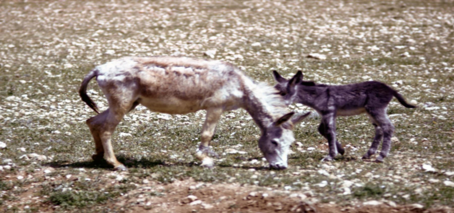 donkey; ass; saddle; eating; feeding; beast; burden; bridle; livestock; domestic; blanket; field; grazing; mammal; animal; donkeys; asses; saddles; beasts; burdens; bridles; blankets; fields; mammals; animals