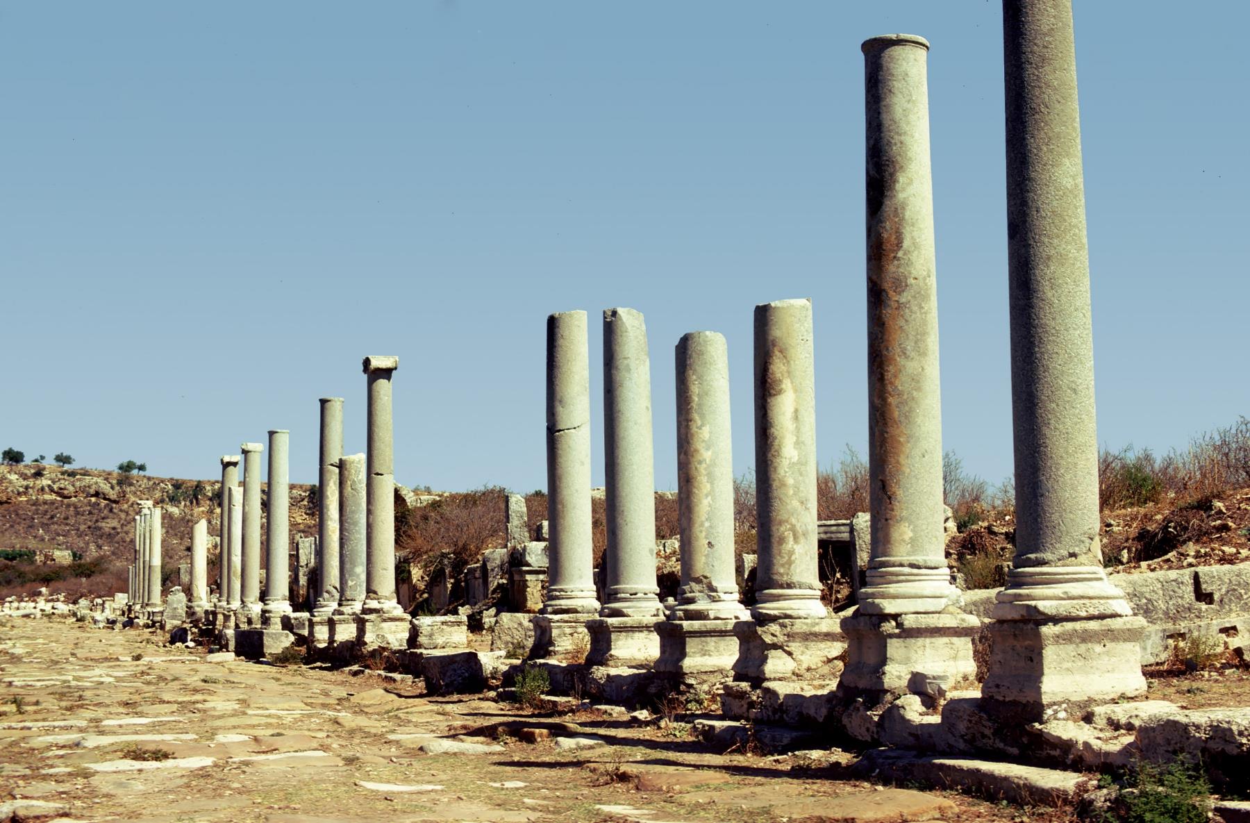 perga; turkey; pamphylia; asia; minor; paul; barnabas; first; missionary; journey; john; mark; left; ruin; archaeology; roman; theater; surrounding; site; missionaries; journeys; marks; ruins; romans; theaters; sites