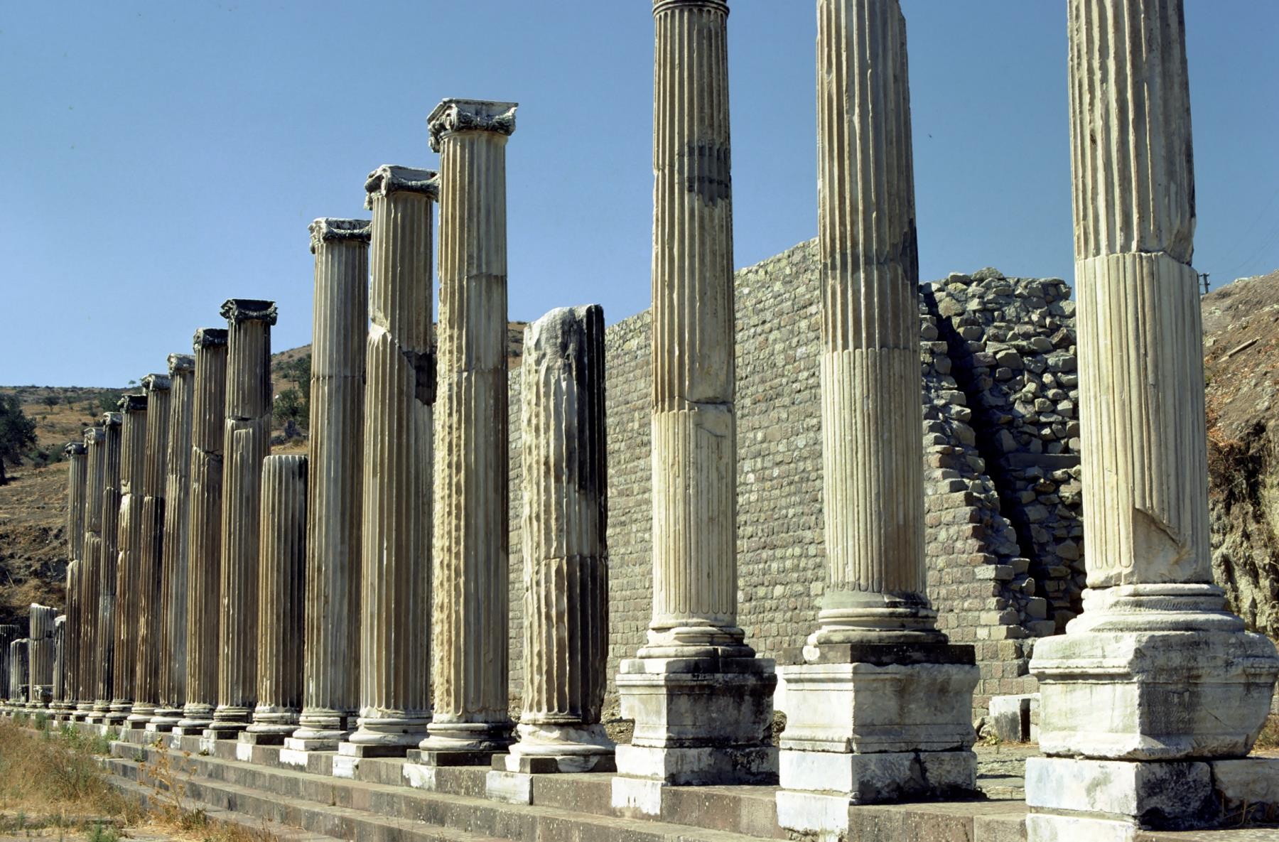 Ruins at Lower Pergamum, or Pergamos, Turkey. Pergamum was the site of one of the Seven Churches to whom Revelation was addressed (Revelation 3:12-17). Archaeological sites can be found at Upper and Lower Pergamum.