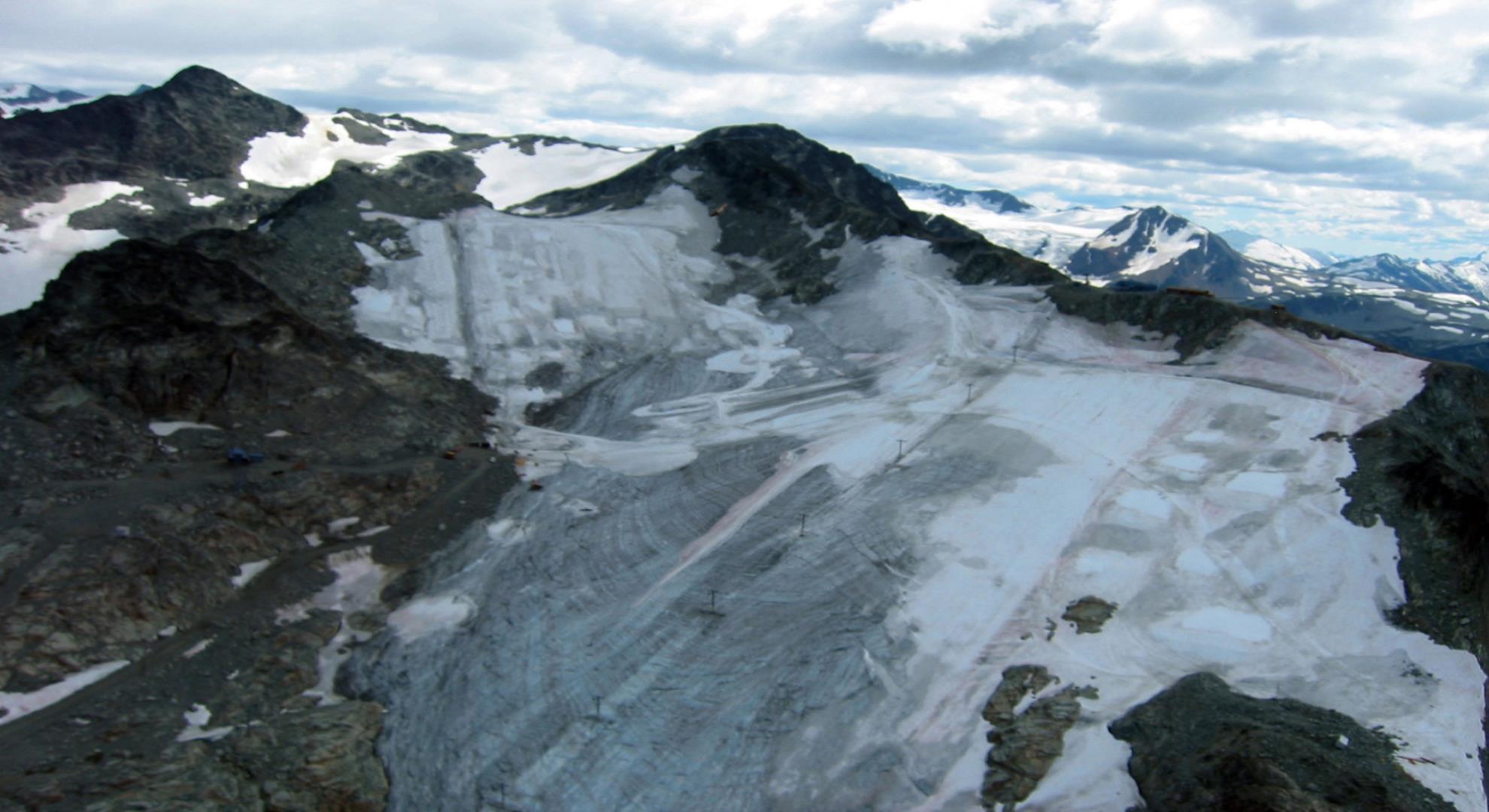 Mountain snow tops against the sky