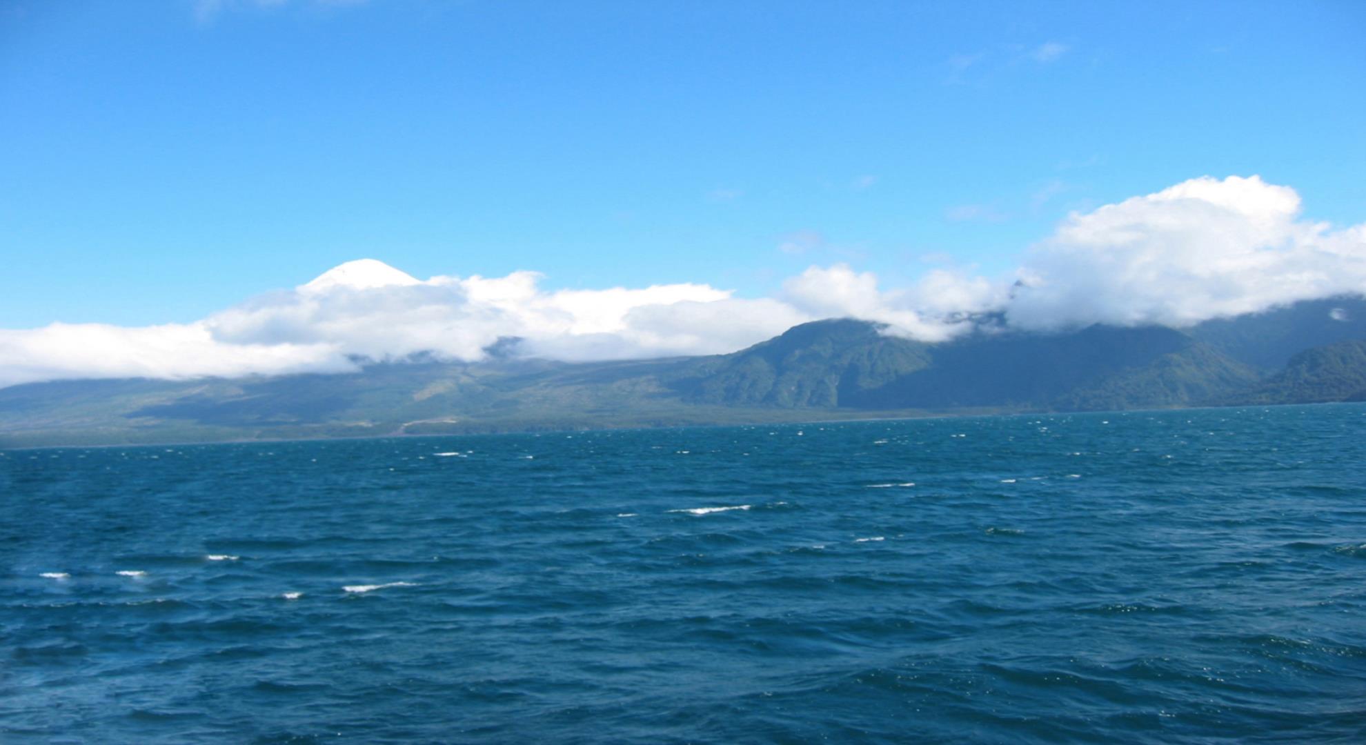 volcano; mount; osorno; snow-capped; lake; cloud; sky; esmeralda; chile; volcanoes; mounts; lakes; clouds; skies