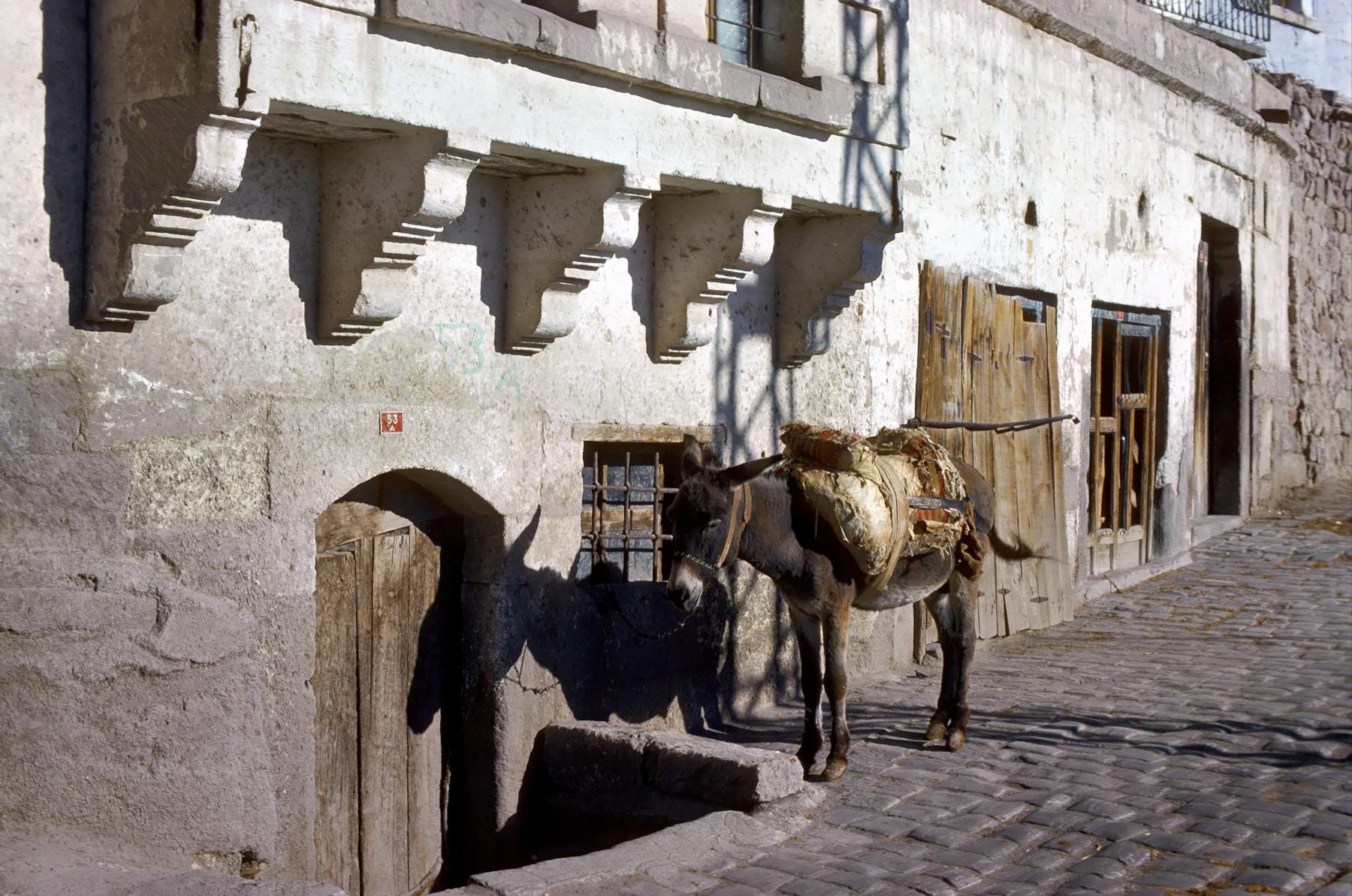 donkey; cappadocia; building; door; street; animal; donkeys; buildings; doors; streets; animals