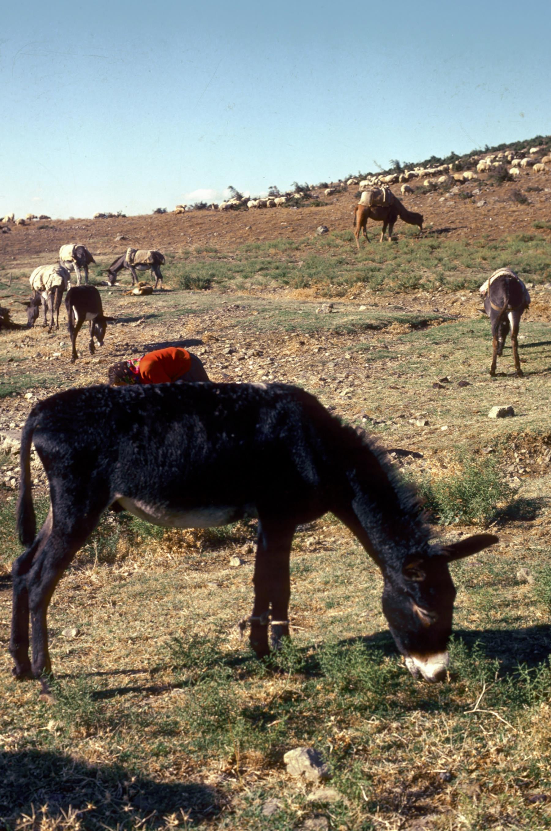 donkey; antioch; grazing; hillside; hill; camel; transportation; shipping; animal; animal; donkeys; hillsides; hills; camels; transportations; animals