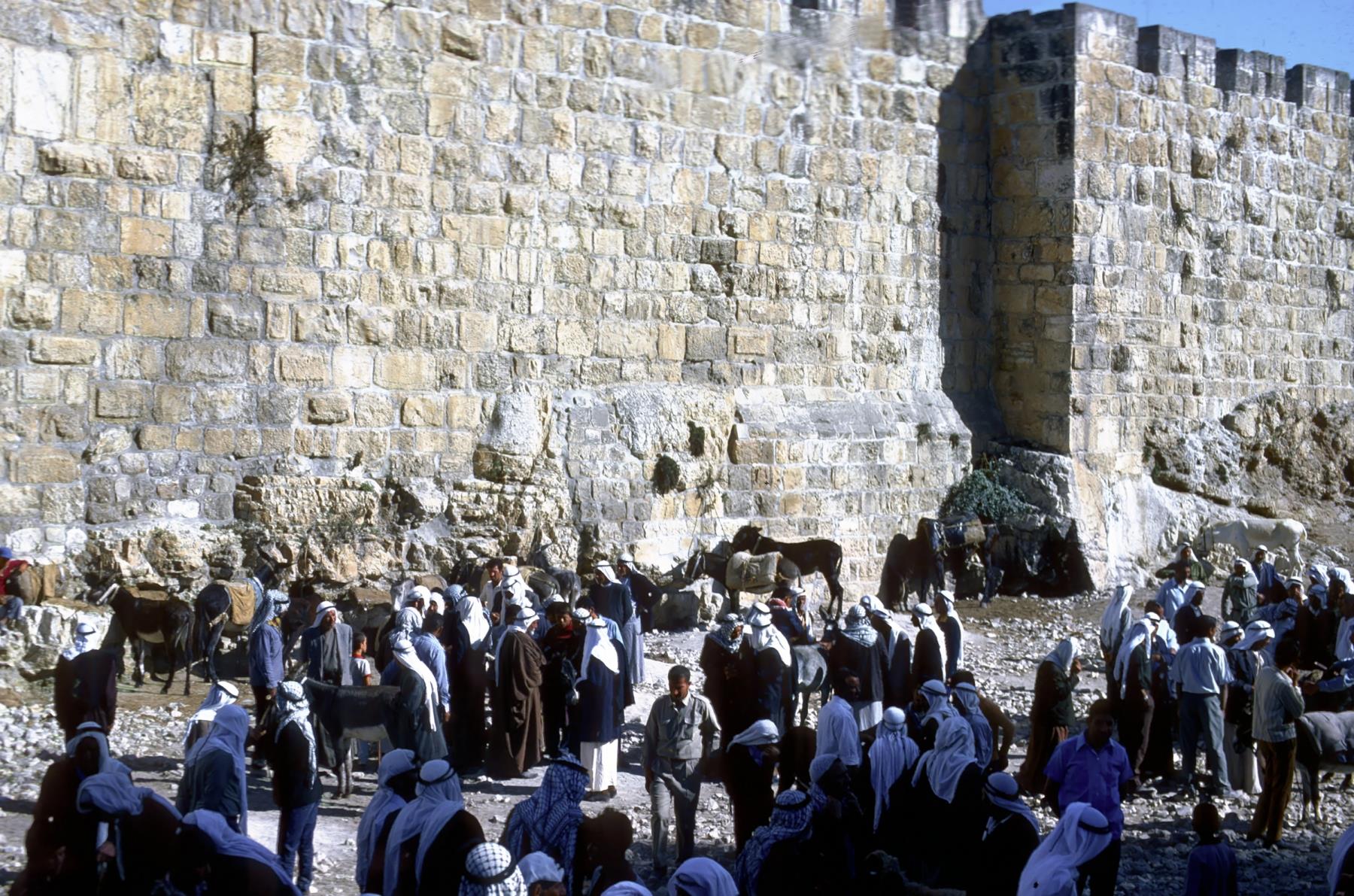 Bedouin gather in a sheep market outside the walls of Jerusalem