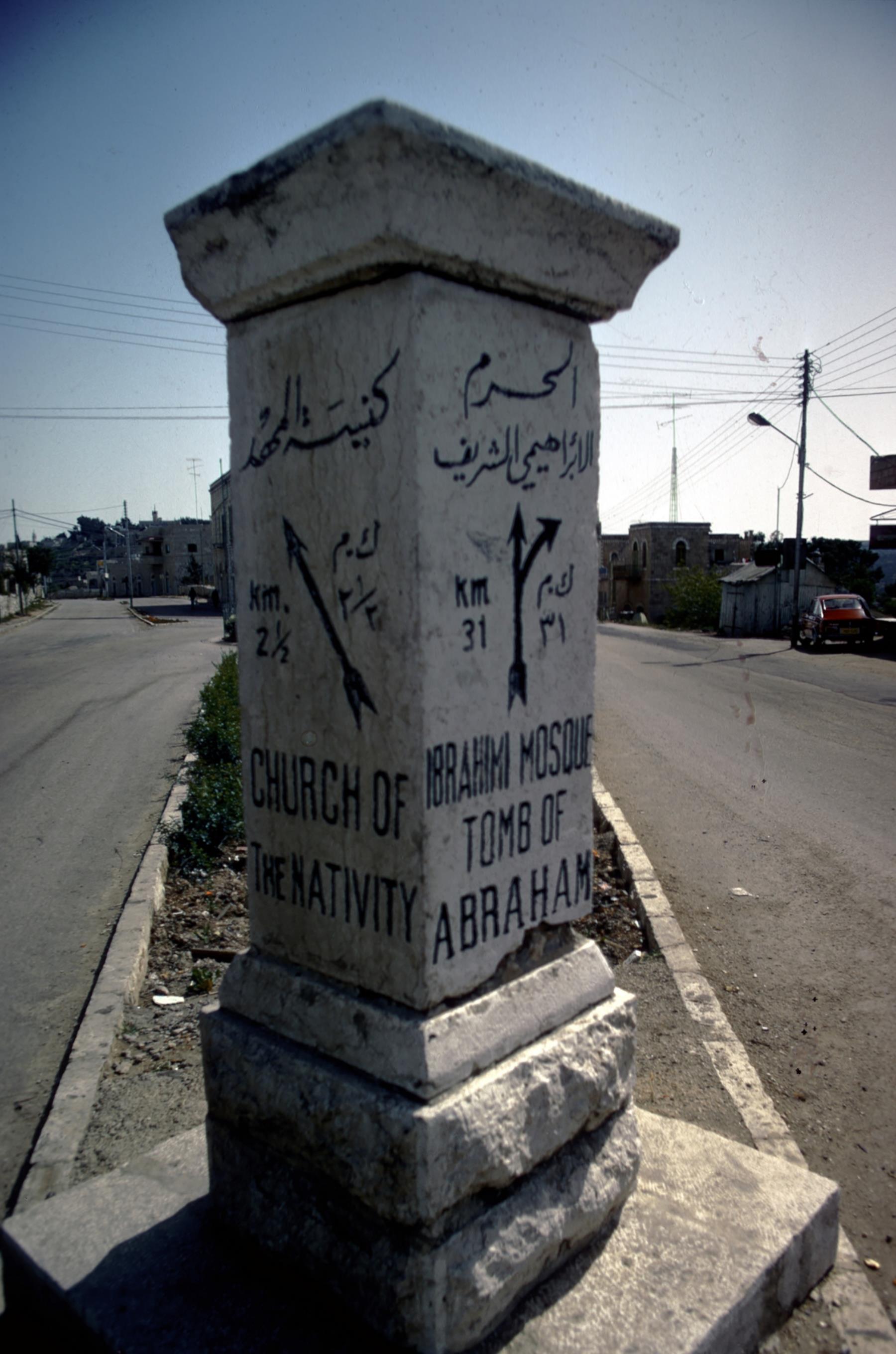 Sign ![]() Road sign showing distances to the Church of the Nativity in Bethlehem and the tomb of Abraham in Hebron. sign; road; distance; church; nativity; bethlehem; tomb; abraham; hebron; marker; signs; roads; distances; churches; nativities; tombs Bible Hub |