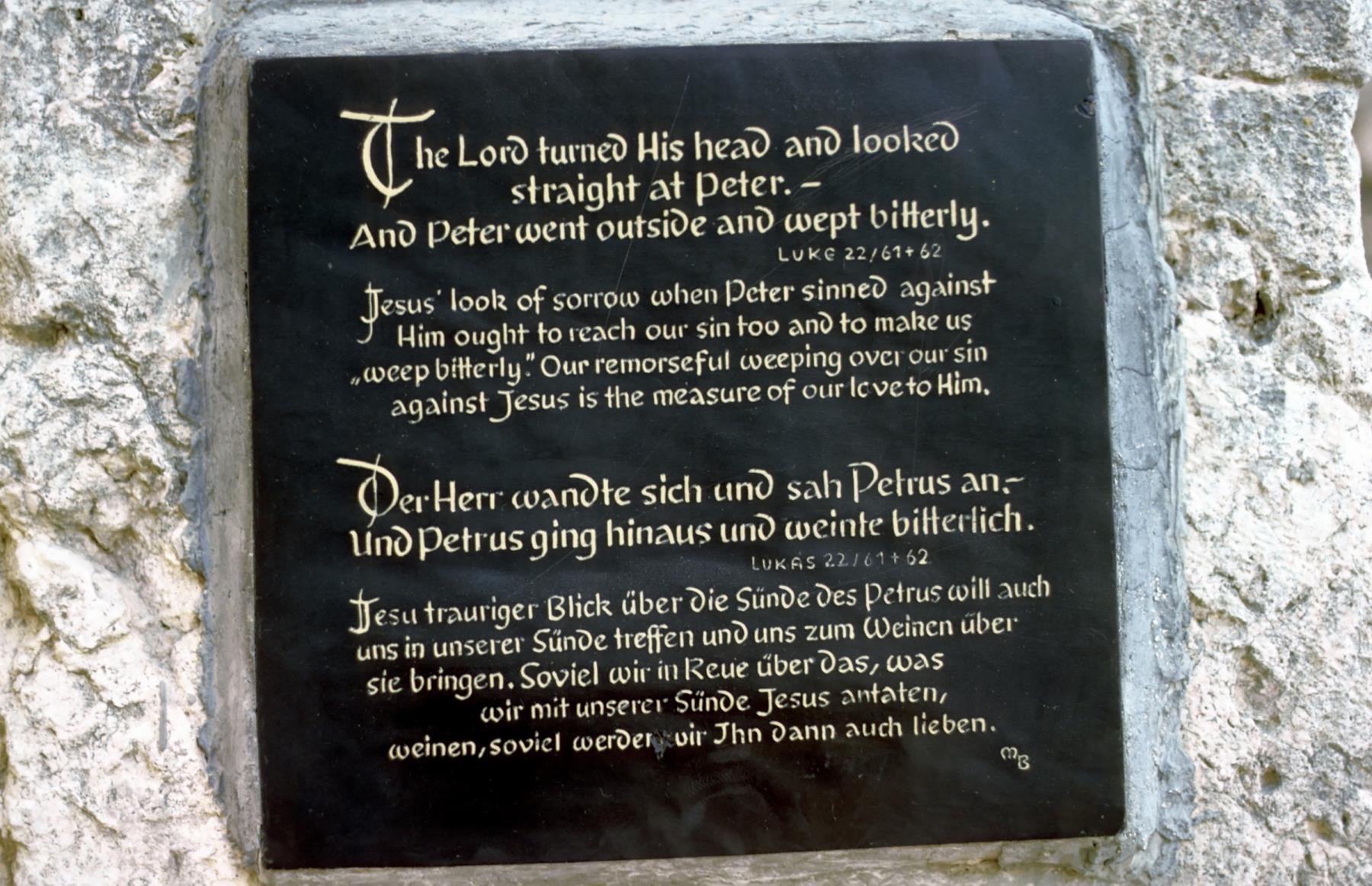 Sign at St. Peter in Gallicantu Church ![]() Sign at St. Peter in Gallicantu Church, a traditional site where Peter denied Jesus. mount; zion; peter; st. ; gallicantu; church; sign; denied; denies; denial; denying; mounts; churches; signs; denials Bible Hub |