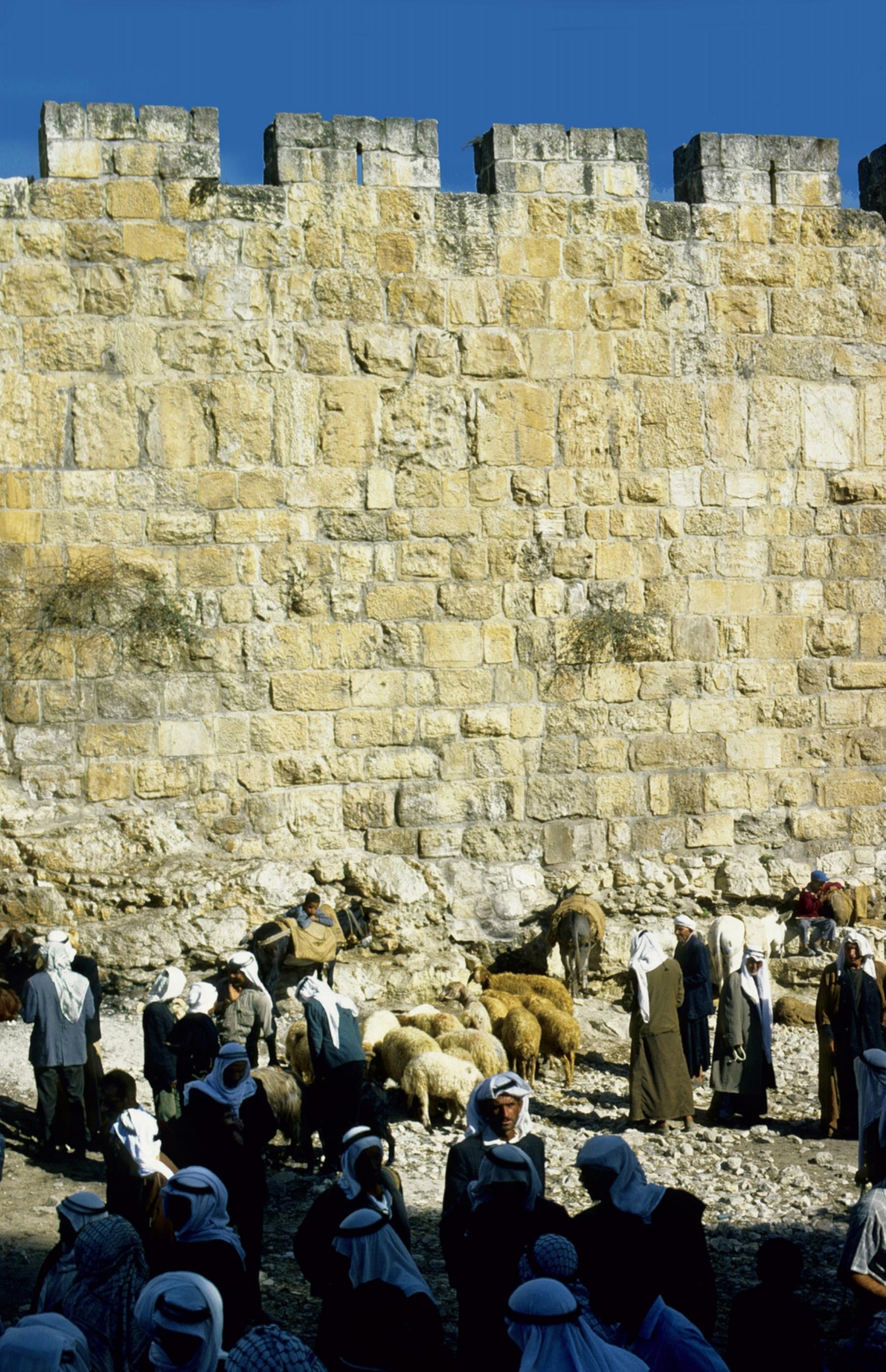 bedouin; sheep; market; jerusalem; wall; people; crowd; lifestyle; costume; clothing; dress; markets; walls; peoples; crowds; costumes; dresses