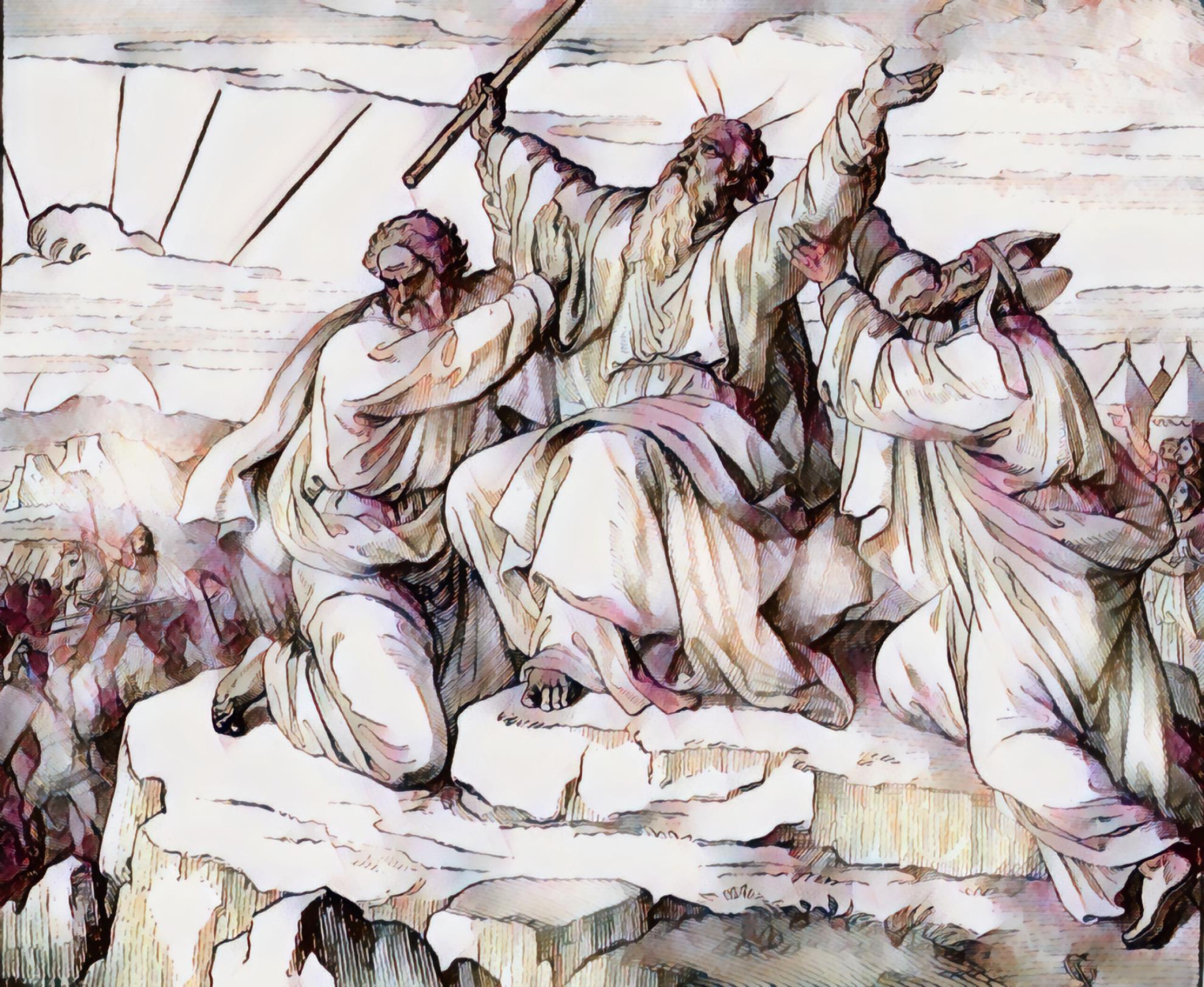 Aaron and Hur holding up the hands of Moses