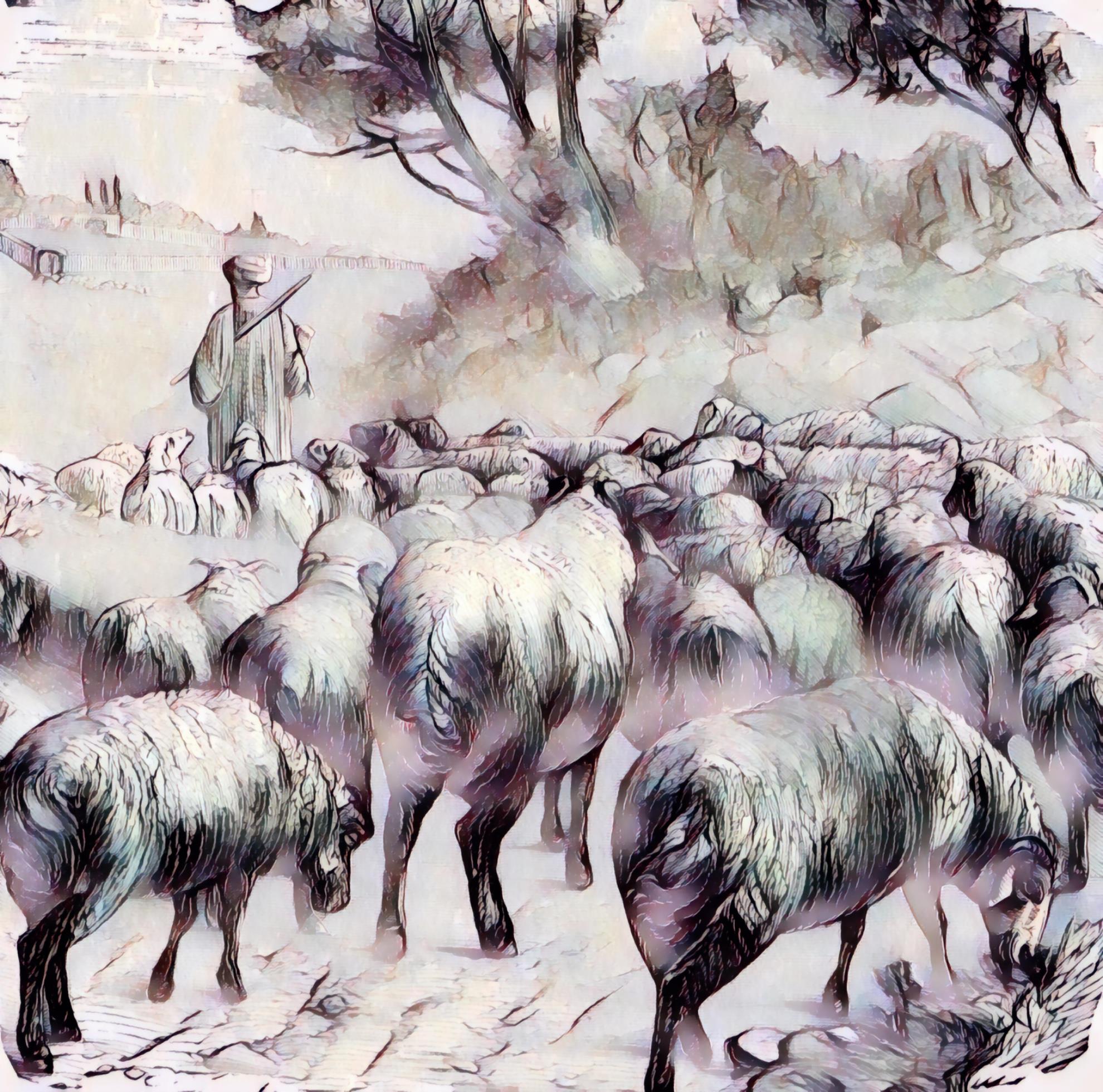 shepherd; leading; flock; sheep; staff; rod; pasture; follow; lead; animal; shepherds; flocks; staffs; rods; pastures; leads; animals