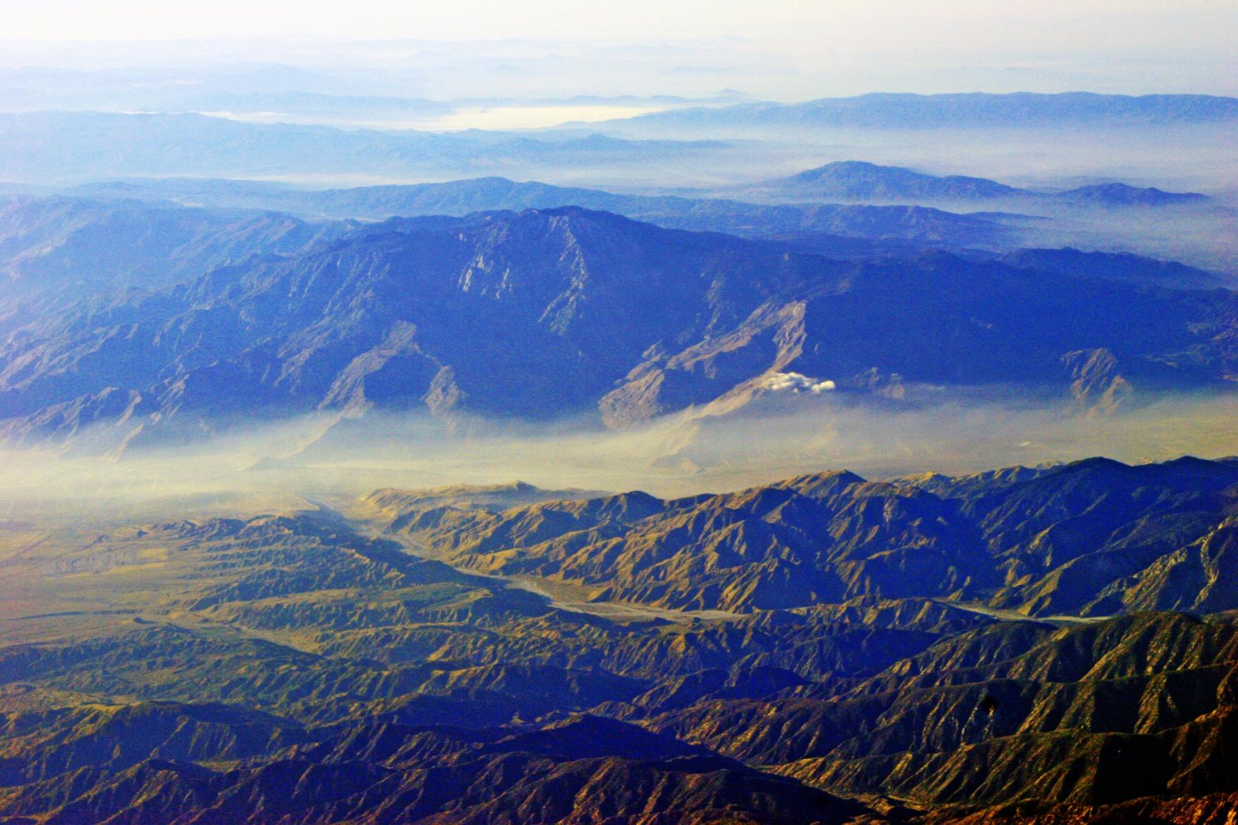 From thousands of feet in the air, the mountainous landscape of the western United States rolls on for miles.